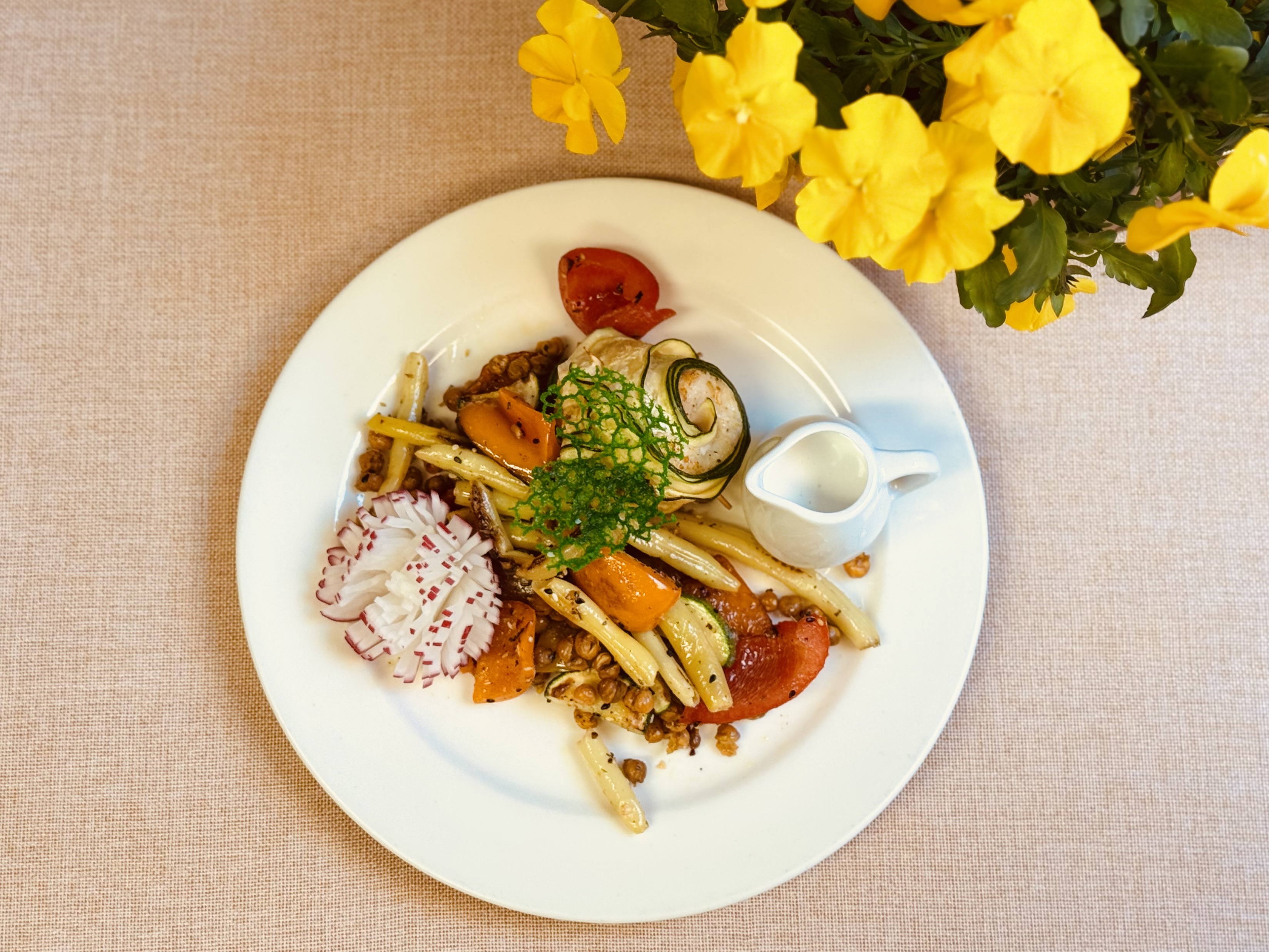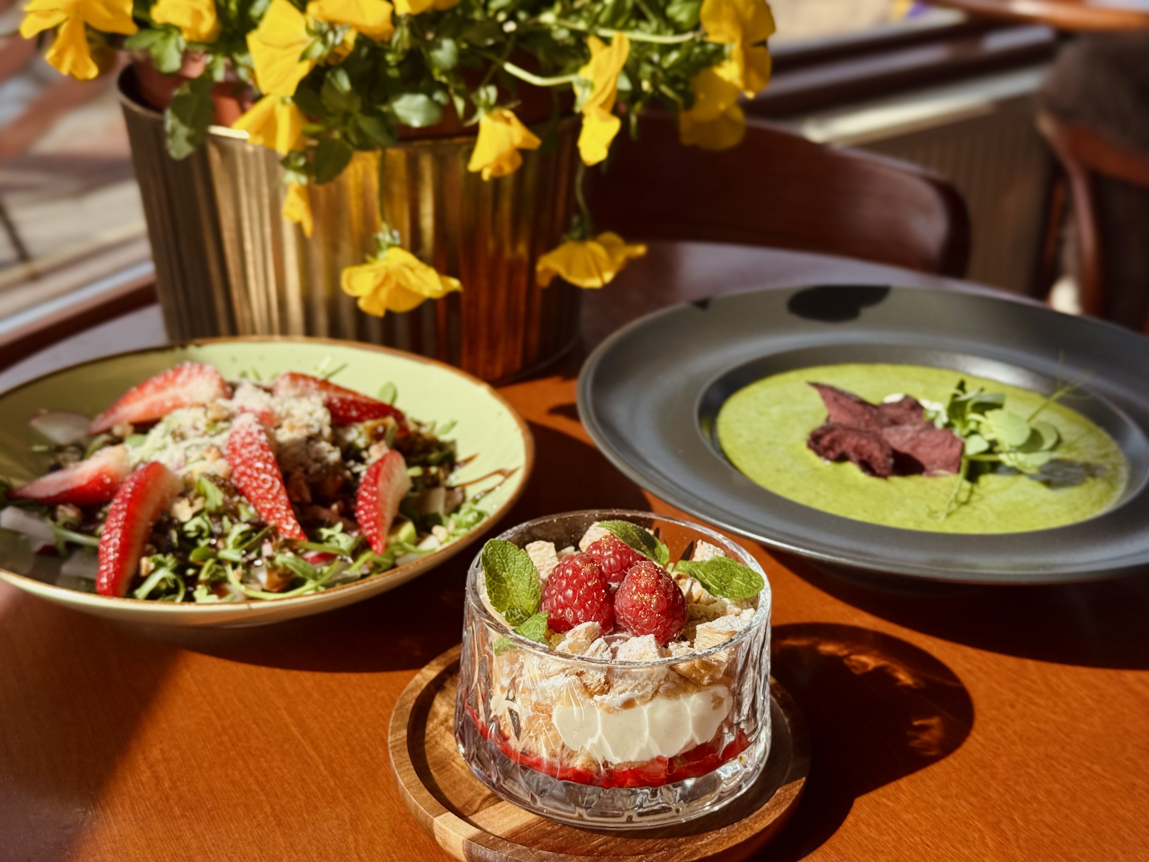Pavasara “baudĒŠANAS” ēdienkartēs atradīsiet dažādas Eiropas virtuves variācijas, piemēram, uzkodās tiks piedāvāti viegli marinēti jaunie sparģeļi ar tomātu – šalotes sīpolu salsu, svaigā siera - lazdu riekstu krēmu, spinātiem un cietā siera kraukšķiem; lakšu un zaļo zirnīšu krēmzupa ar zilo sieru, kalē čipšiem un čilli eļļu; grilētas paprikas gaspačo ar viegli marinētu fenheli, dārzeņu salsu un tīģergarnelēm; svaigo dārzeņu zupa un citas uzkodas. Starp pamatēdieniem atradīsiet: papagaiļzivs fileja ar murķeļiem, ziedkāpostu biezeni, zaļajiem sparģeļiem un zivju buljona-citrusu mērci; pīles krūtiņa ar tvaicētiem dārzeņiem un rabarberu – medus mērci; pasta papardelle ar grilētu paipalas krūtiņu, sparģeļiem, karalisko austersēni, rikotu un parmezāna sieru; su-vid tehnikā grilētu tītara fileju ar batāšu biezeni un spinātu-sparģeļu mērci vai uz oglēm cepts zuša šašliks ar grilētiem dārzeņiem. Bet desertā tiks piedāvāta rabarberu tarte ar dedzinātu bezē, rabarberu saldējumu un aveņu mērci; cidoniju muss ar olu kremu un svaigām ogām; musa kūciņa ar rabarberu konfitu un pistāciju biskvītu vai pīrāgs ar konjakā ceptiem āboliem, kā arī daudzi citi gardumi. Ēdinātāji būs parūpējušies arī par pavasarīgiem dzērieniem, piemēram, bērzu sulas limonāde, atspirdzinošs rabarberu bezalkoholisks dzēriens, bezalkoholiskais greipfrūtu Spritz.