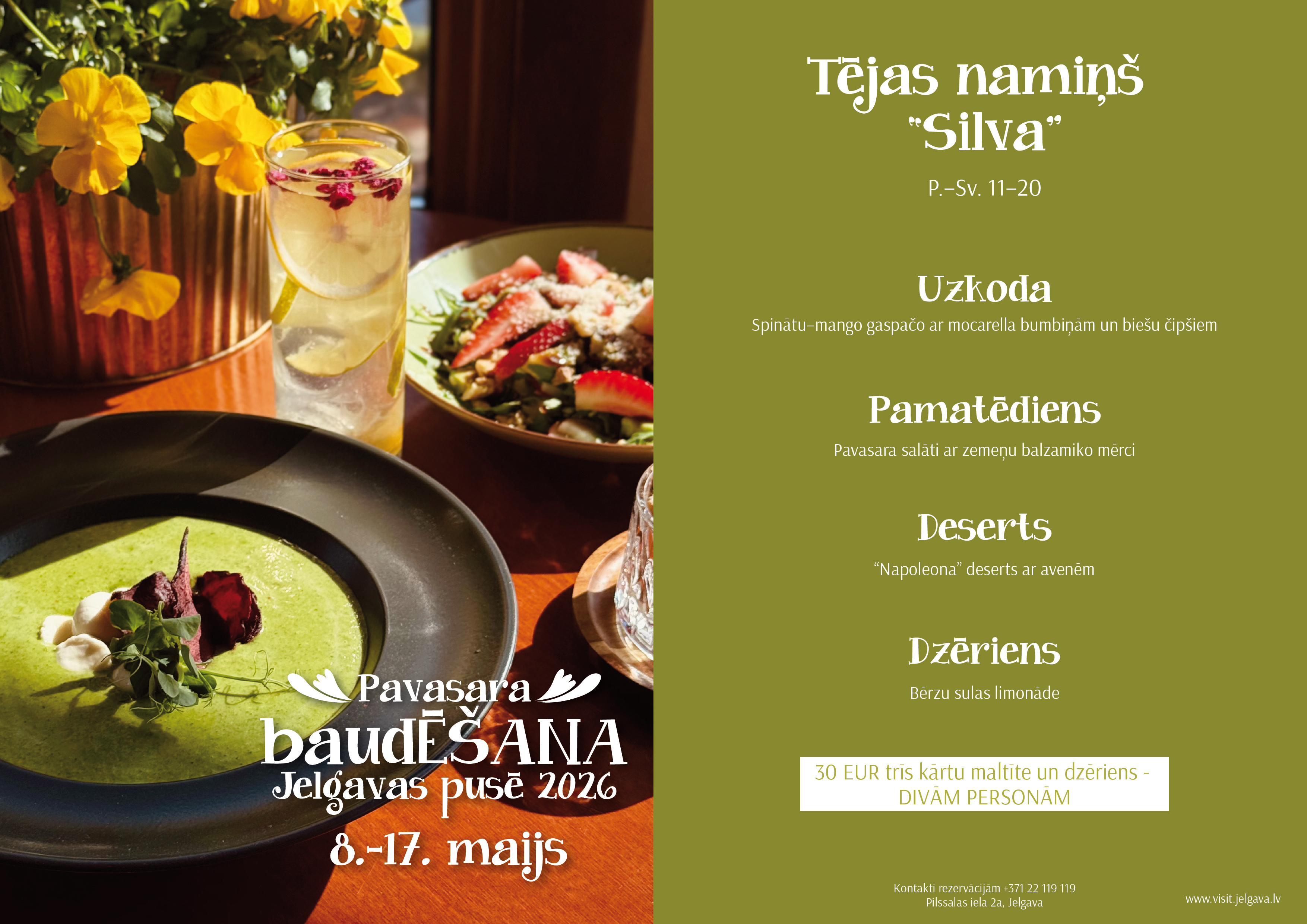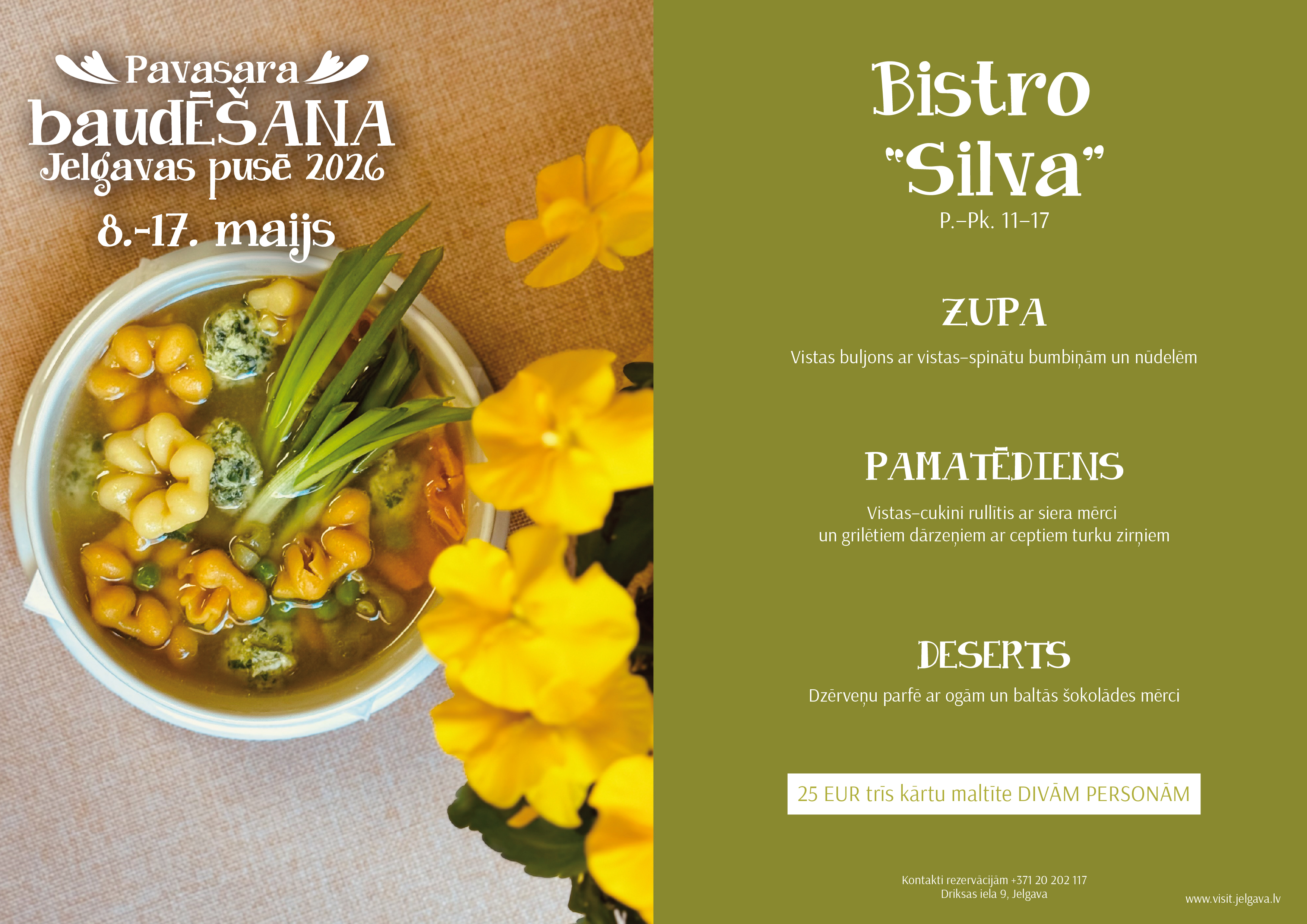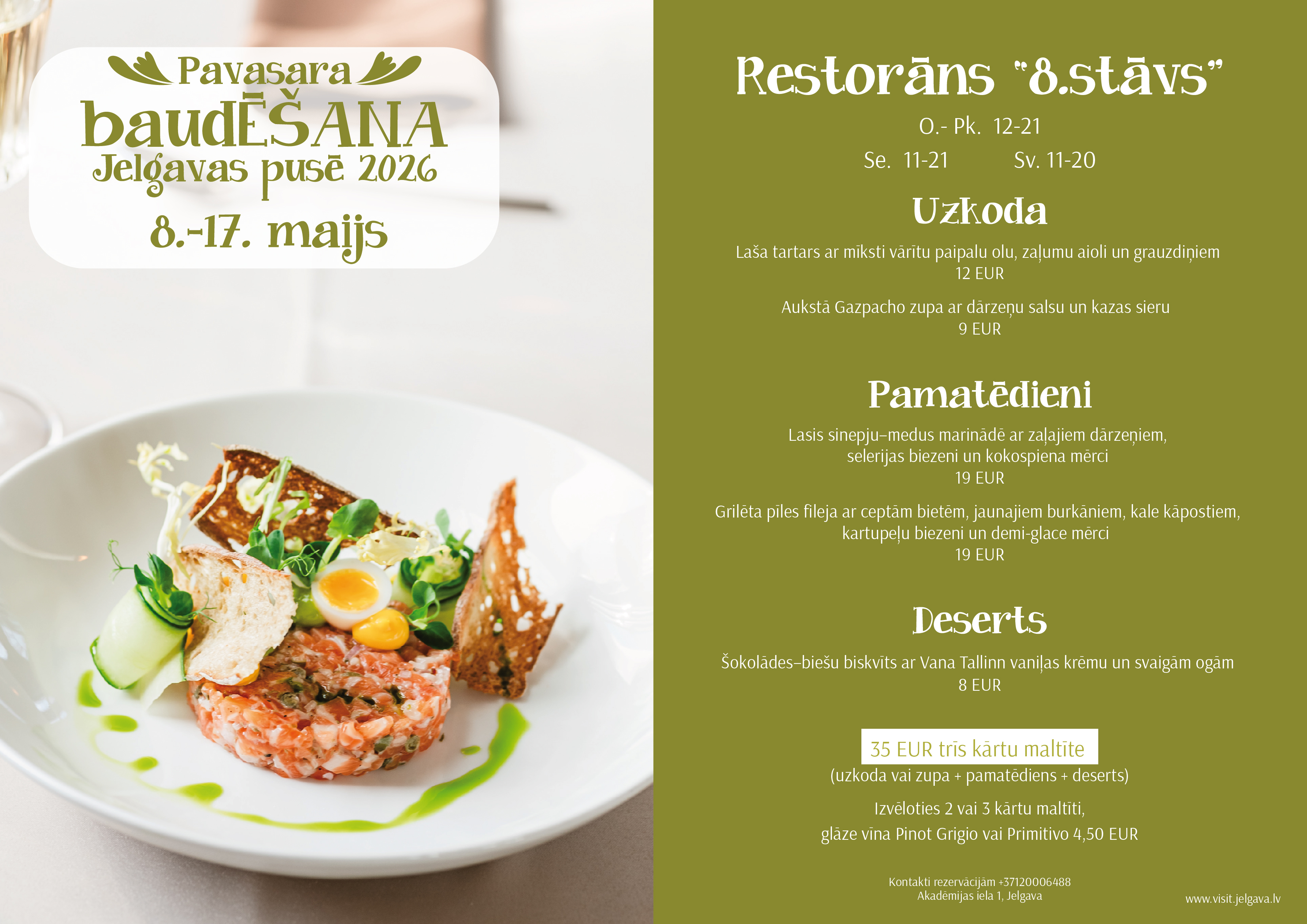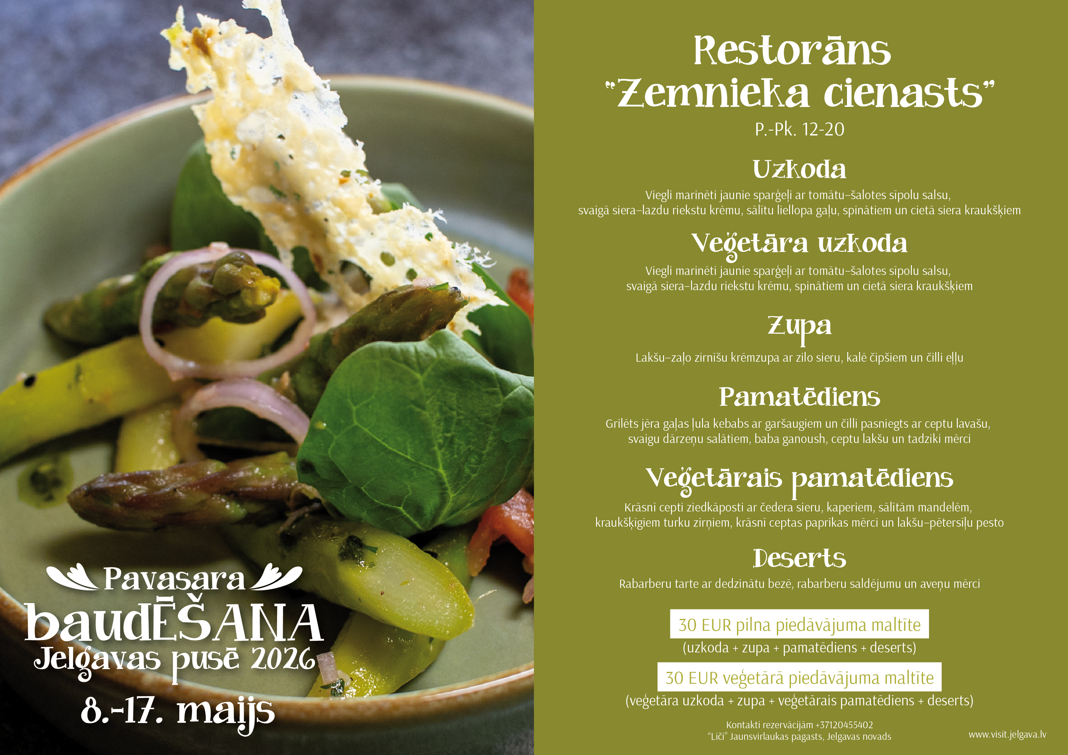 Akcijas “Pavasara baudĒŠANA Jelgavas pusē” dalībnieku darba laikus un ēdienkartes no 15. aprīļa atradīsiet mājaslapā www.visit.jelgava.lv, Visit.Jelgava Facebook un Instagram profilos, kā arī Jelgavas ēdināšanas un viesmīlības nozares asociācijas “Facebook” profilā Taste Jelgava un asociācijas mājas lapā www.tastejelgava.lv.