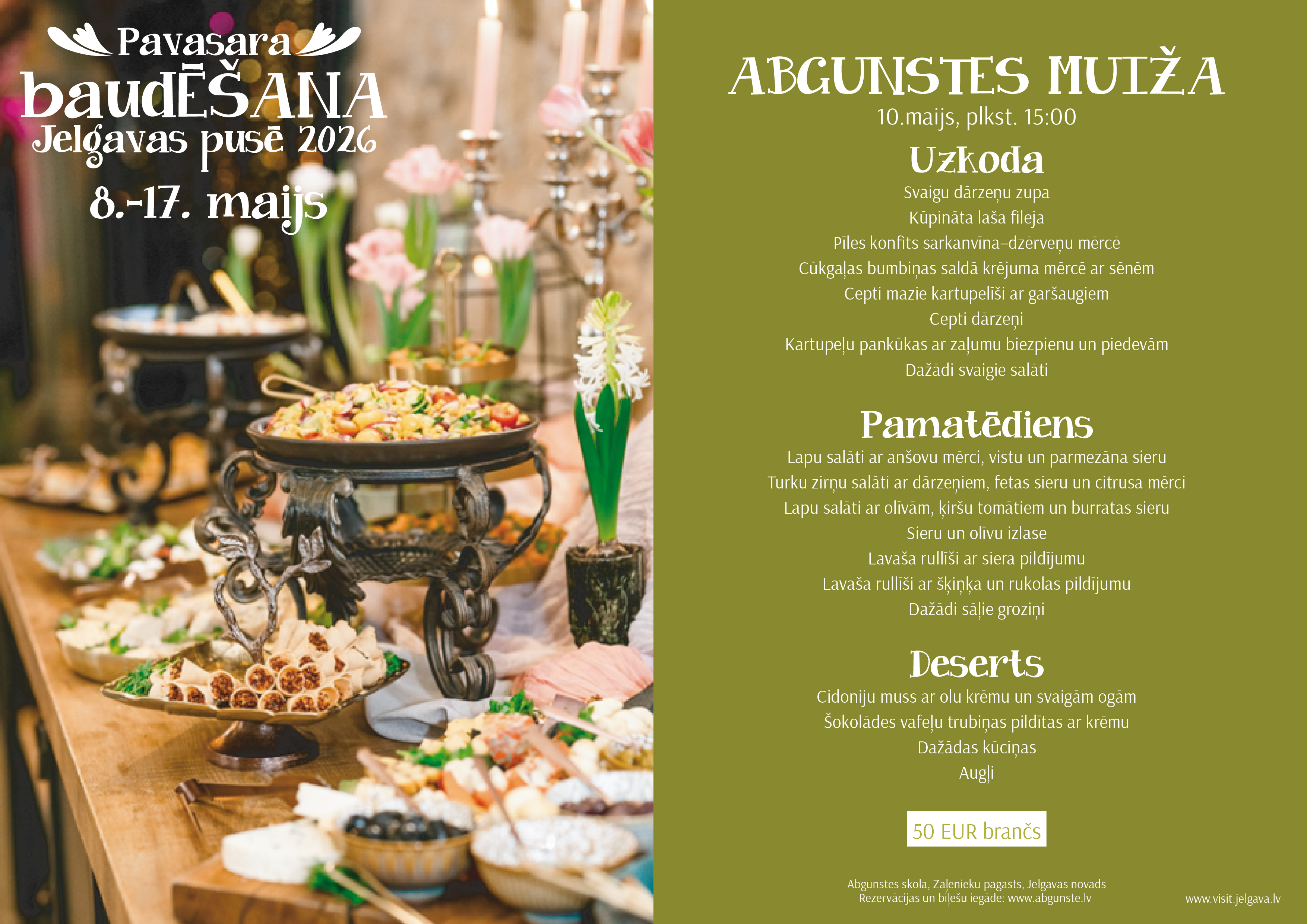 Pavasara “baudĒŠANAS” akcija turpinās jau aizsākto tradīciju, dodot iespēju atklāt un no jauna iepazīt Jelgavas un Jelgavas novada ēdināšanas uzņēmumu daudzveidību. Tomēr, šogad būs arī kāds jaunums – visi ēdinātāji piedāvās nobaudīt divu vai trīs kārtu ēdienus noteiktā cenu kategorijā – 20, 25, 30, 35, 40, 45 vai 50 EUR. Divu kārtu maltītes būs pieejamas no 20 līdz 40 EUR cenu robežās; trīs kārtu maltītes – no 25 līdz 45 EUR cenu robežās, savukārt branča piedāvājumi būs pieejami par 40 un 50 EUR.