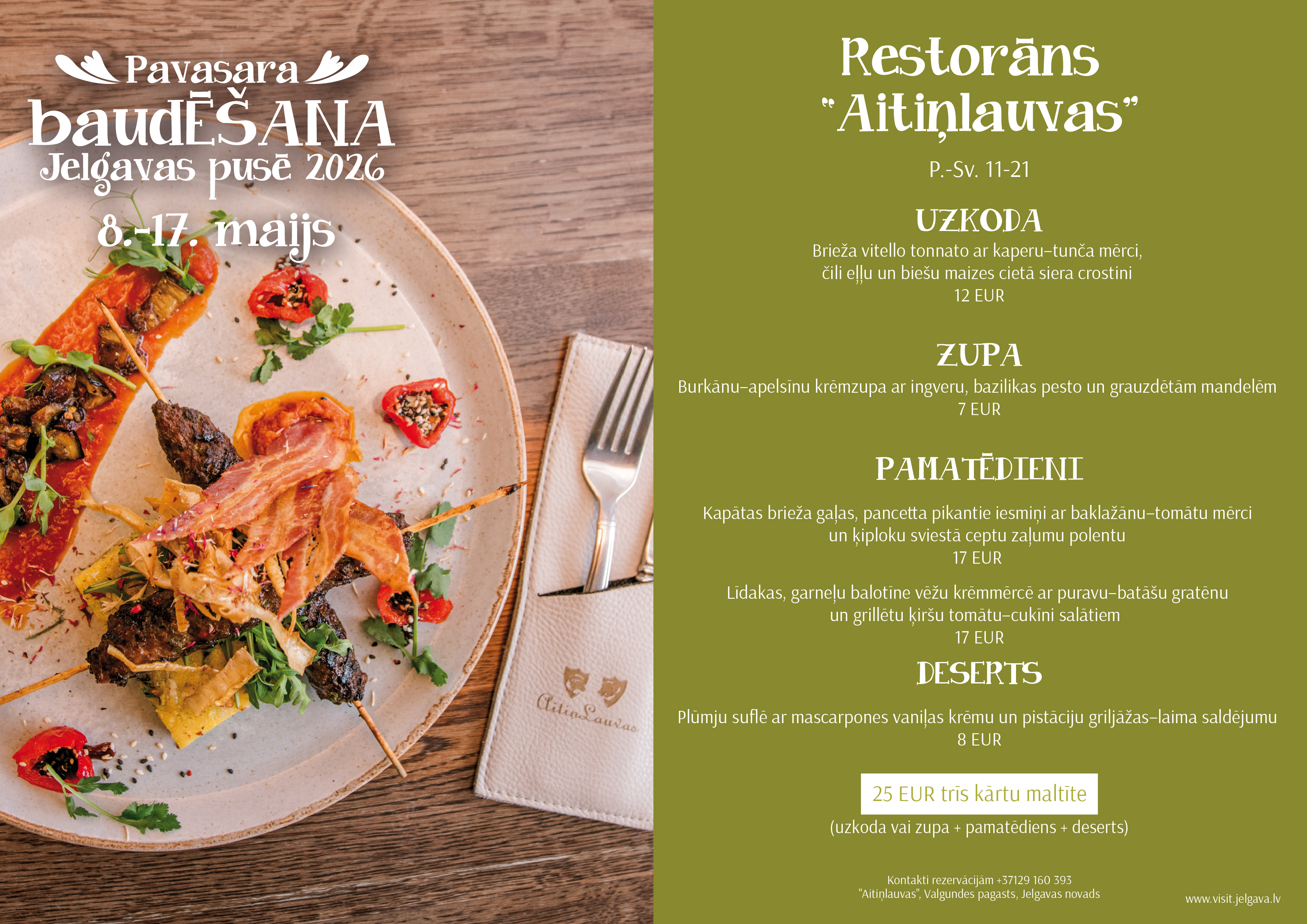 Maija sākumā "Visit Jelgava" Facebook profilā norisināsies arī konkurss, kurā varēs laimēt iespēju nobaudīt kādu no īpašajiem "baudĒŠANAS" piedāvājumiem.