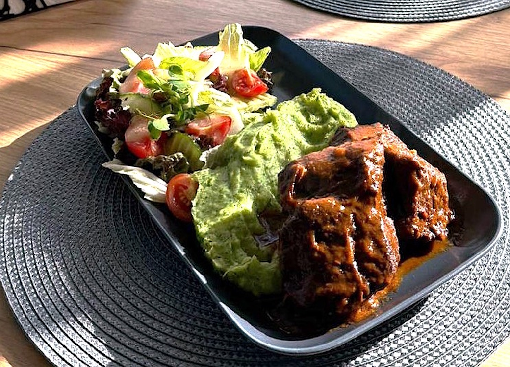 - Laša steiks ar lapu salātiem 12,00 EUR;