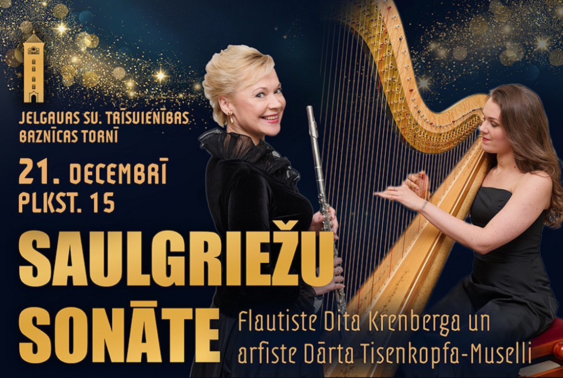 Biļetes pieejamas www.bilesuparadize.lv - Biļetes uz Dita Krenberga un Dārta Tisenkopfa-Muselli Ceturtās adventes kamermūzikas koncertā “SAULGRIEŽU SONĀTE” Jelgava, Akadēmijas iela 1 2025. gada 21. decembris, svētdiena, 15:00 Jelgavas Sv. Trīsvienības baznīcas tornis , "Biļešu Paradīzes " kasēs un Jelgavas Sv. Trīsvienības baznīcas tornī.