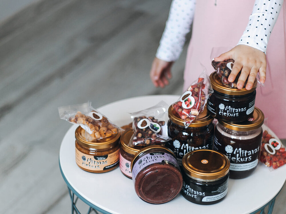 Tiek ražoti sīrupi, tēja, čiekuri sīrupā, ievārījumi ar medu un ogām, šokolādes, karameles un citi vērtīgi našķi.